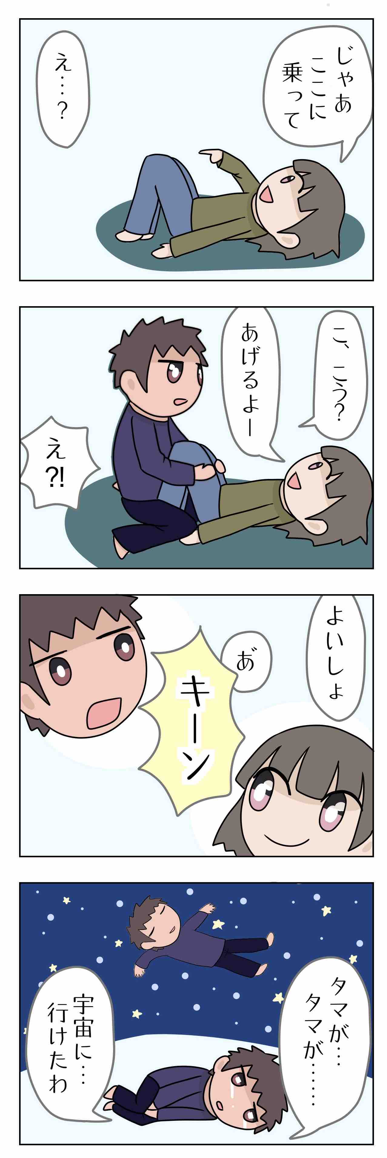 子どもにするみたいに飛行機のポーズをやってみますが……