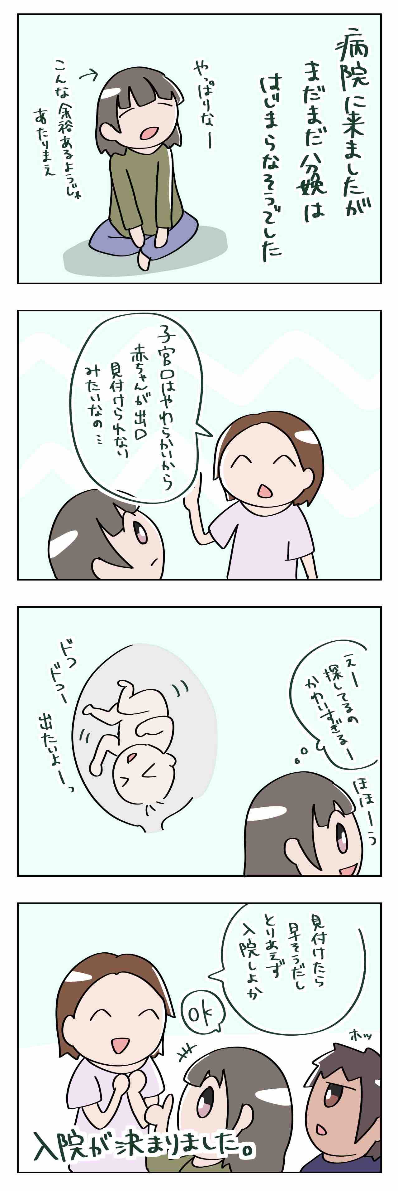 子宮口が柔らかいから、赤ちゃんが出口を見つけたら分娩まで早そうとのことで入院が決定!
