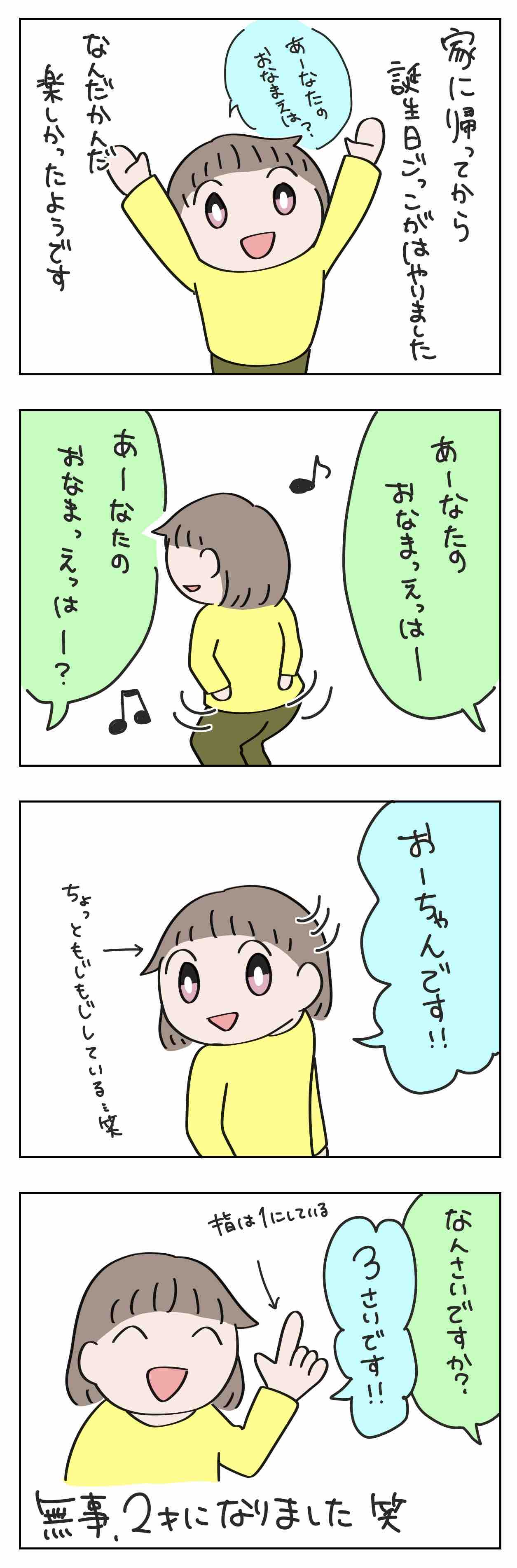 (今では指でピースができるようになって、「にさい」も言えるようになりました)
