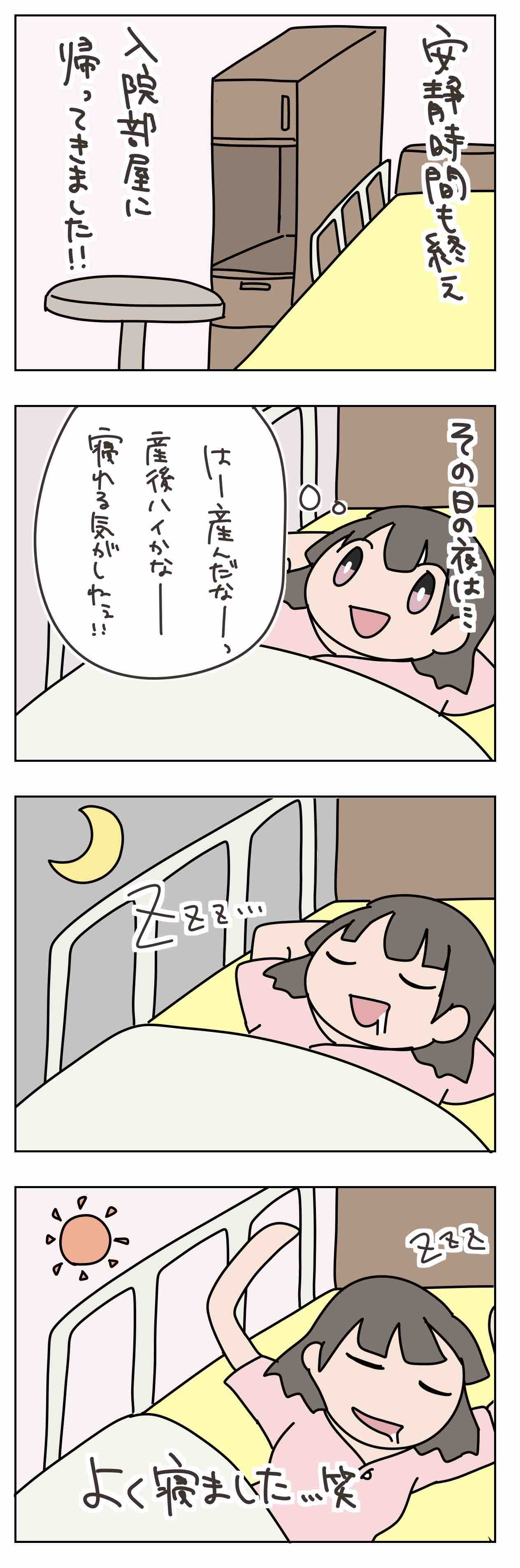 思いの外すぐに寝れて、後陣痛もなく、朝までぐっすり寝ました笑
